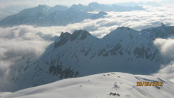 Verbindungsgrat zur Fippia fast durchgehend mit Skis begehbar, auf einer Länge von ca. 50 Metern ist es aper.