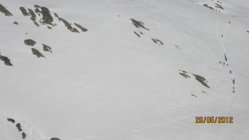 Abfahrt: Kein klassischer Firn vorhanden, teils noch etwas hart und kurz darauf schon weich. Von der Fippia recht ungleich: oben eher gut, Mitte noch etwas hart, unten schon um 8.15 Uhr weich, jedoch noch gut zu fahren.