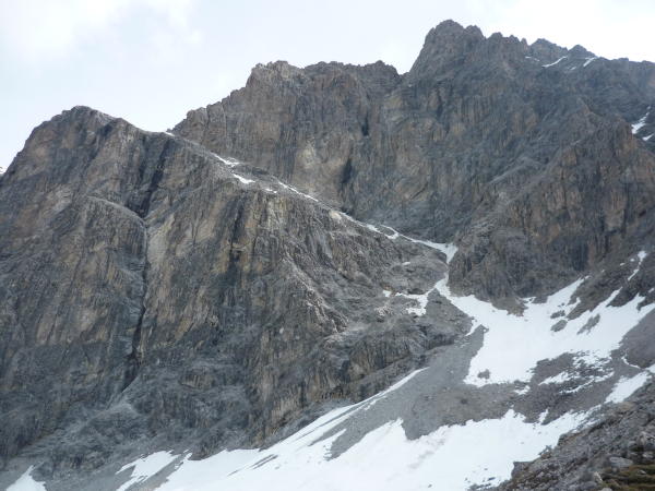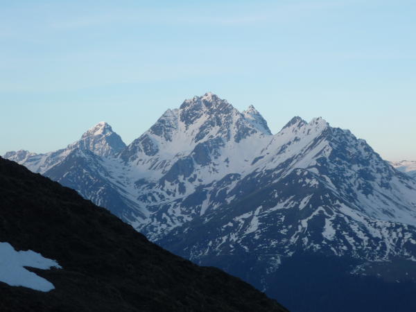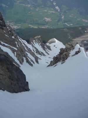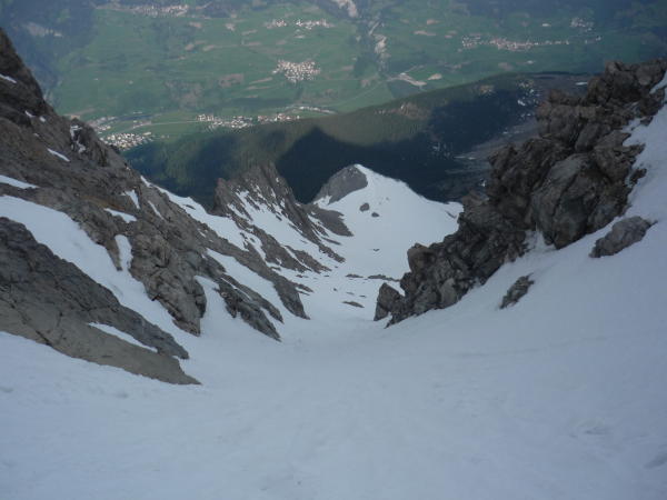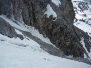 Alles gut gefroren am frühen Morgen und sehr stabile Lage. Steinschlag in den Couloirs.