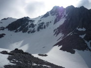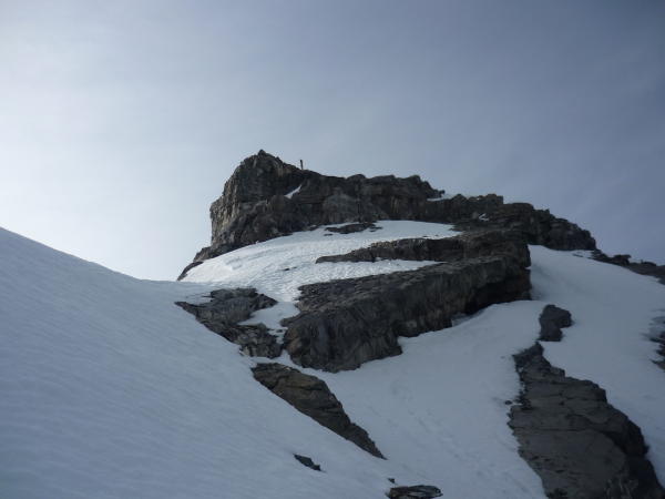 In der Gipfelflanke habe ich dann die Steigeisen montiert, da das Couloir oben doch noch recht anzieht und die Traverse zum Gipfel teilweise ausgesetzt ist. Im Abstieg habe ich die Steigeisen bis Ausgang des Senda Diagonala draufgelassen.