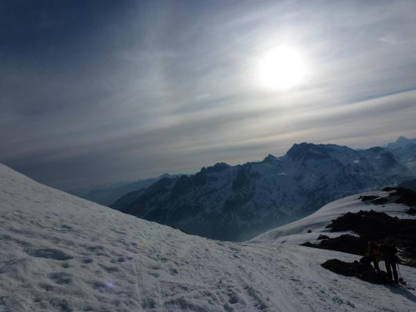 Prächtige Frühlingstour: Nach weitgehend klarer Nacht Schnee beim ganzen Aufstieg tragend, bei der Abfahrt schön aufgesulzt.