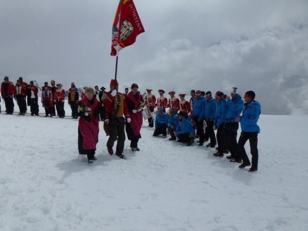 Die Tour wurde mit dem Dahmburen und Pfeiffern aus dem Oberwallis unternommen. Nach erfolgter Besteigung des Breithorns habe jene mit Fahnenmarsch noch auf dem Breithornplateau gespielt.