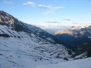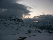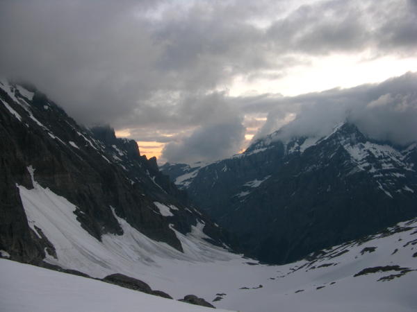 aus der ostwand balmhorn donnert noch schnee runter, schon vor tagesanbruch. aus der westflanke ferdenrothorn ebenfalls schneerutsche.südseiten balm/rinderhorn erwachen mit der sonne auch...
