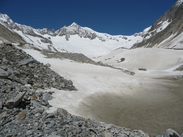 Weiterhin gut. Die Skitragestelle im unteren Bereich Mittelaletschgletscher wird schnell zunehmen.