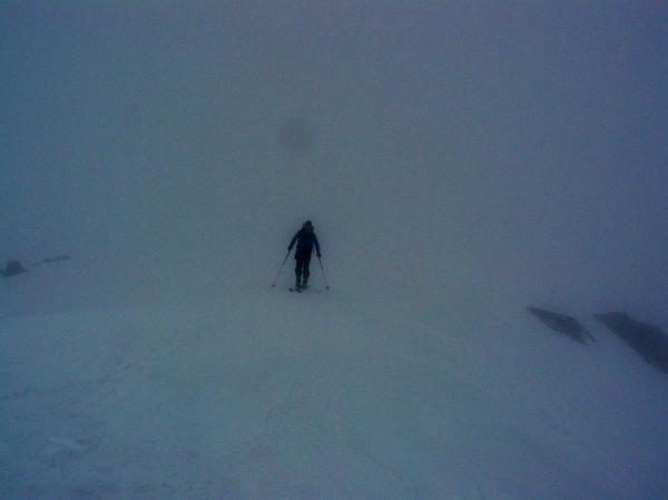 Im obersten Teil nicht aufgefirnt wegen Bisen-Nebel, ab 2800m bis zum Schweizer Zoll beste Verhältnisse. Aussicht oben Null, daher auf Gipfel diesmal verzichtet.