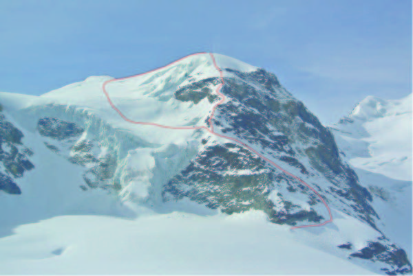 Nach klaren Nächte noch eine Weile machbar. Früh starten! Spälte und Brücken beim Übergang vom Gletscher auf die Kante bei der Abfahrt kritisch beurteilen.