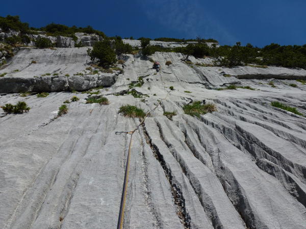 Trotz wunderbarem Kletterwetter nur einige wenige Seilschaften unterwegs. Routen weitgehend trocken.