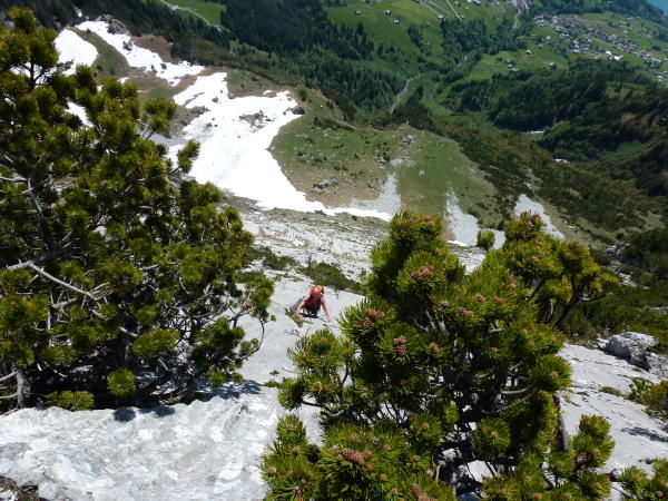Zustieg: noch grössere Schneefelder, die ausser beim Übergang in die Felsen umgangen werden können. Abstieg (Kettenweg) schneefrei.