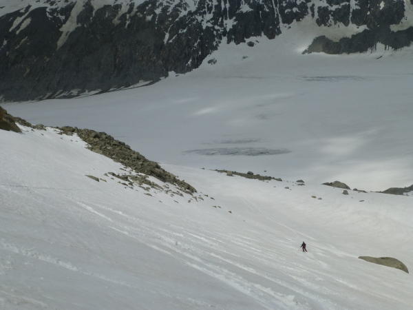 Wir trafen noch sehr gute Verhältnisse beim Aufstieg an bei hartem Schnee. Unser Ziel war eigentlich der Clariden gewesen doch wegen dem Föhn der angesagt wurde gingen wir Richtung Furka.Das Wetter konnte schwer erraten werden. Wir hatten fast alles angetroffen,etwas wolkig bis herrliche Sonne,doch recht gut und nur mit leichtem Wind am Gipfel.Wir konnten vom Gipfel abfahren was zur Zeit sehr gut geht.Die Abfahrt machte Spass bei dem gutem Schnee.Im oben Teil schöner Pulver und unten weicher Frühlingsschnee.Der Gletscher ist noch recht gut eingschneit,auch dort liefen unsere Skis sehr gut bis zur Eisgrotte.