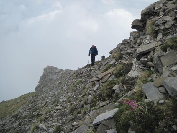 Vom Regen nass, saftig matschig ab dem Vorder Ahorni. Am bewaldeten Grat bis 1900 müM ebenfalls nass und rutschiger Wurzel-Gratpfad (unter diesen Bedingungen T3+). Im felsdurchsetzten Teil ist die Nässe nicht mehr störend. Ab 1500 müm praktisch durchwegs Nebel im Aufstieg.