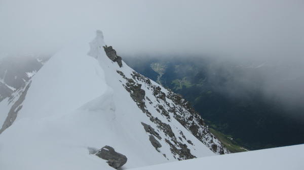Die Abfahrt vom Lucendro war tiptop, leicht angesulzt firnig. Der Grat zur Fibbia verlangt 30 Minuten Fussaufstieg. Faul wurde dann der Schnee gegen Mittag in der Abfahrt von der Fibbia, aber Einsinken war nicht angesagt und in den steileren Hängen gings dann noch rockig zur Sache.