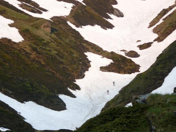 Heute noch Schnee im Couloir bis 5 Min. hinter Strasse bei P. 2002