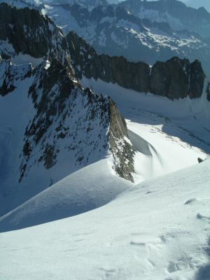 Abfahrt kurz nach 8 Uhr: Oben noch etwas hart (abert sehr griffig) im Mittelteil leicht aufgesulzt, Rhonegletscher ideal, nicht zu weich. Geht man am Morgen vom Gipfel früh weg (vor 9 Uhr), hat man insgesamt wohl die besten Verhältnisse.