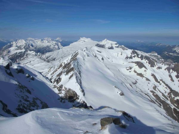 Es braucht schon noch ein paar warme Tage und kalte Nächte, bis sich der Schnee zum Firn verfestigt hat. Oberhalb ca. 2200 m sind die Berner Alpen noch tief verschneit und oberhalb 3000 m noch winterlich weiss.