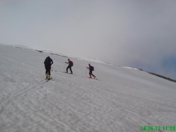Sehr gute Frühsommerverhältnisse. In Randinascia nur noch wenig Schnee,Gletscher dagegen sehr gut gedeckt. Abfahrt zur Zeit besser dem östlichen Hauptbach nach zum Lago del Zött.