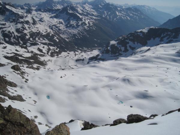 Alle Touren auf der Ostseite des Passes nicht mehr möglich. Rothorn, Schwarzhorn und Chlein Schwarzhorn noch möglich.