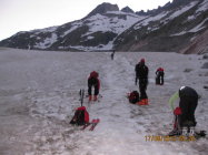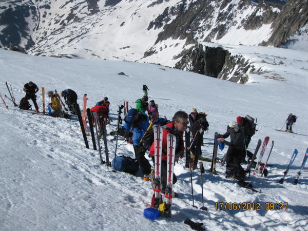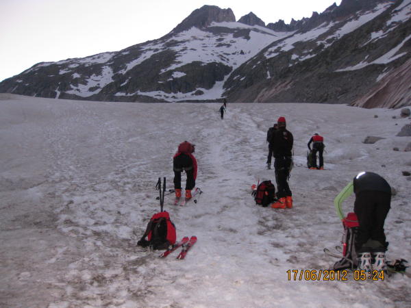 Wer die Steigeisen schon bis zum Skidepot getragen hat, soll sie dann auch montieren. So quasi als Saisonendmontage.