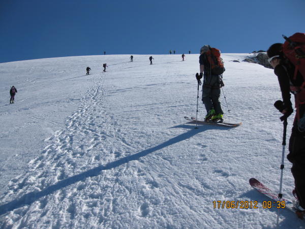 Für die Jahreszeit Verhältnisse wie vom Reissbrett. Tolle Bedingungen von unten zum Gipfel und zurück. Das windstille, wolkenlose und milde Wetter trugen das Seinige dazu bei.