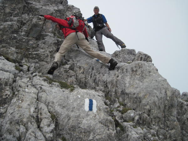 Die blau-weiss markierte Route hat wohl luftige Stellen am Nordgrat, diese sind allerdings vorzüglich mit Ketten gesichert.