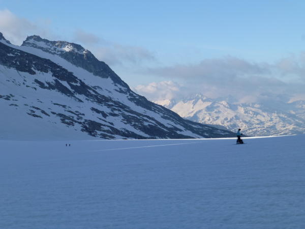 Die Tour wird nicht mehr lange Spass machen, ausser man liebt das Blankeis des Rohnegletschers voralem in der Abfahrt.