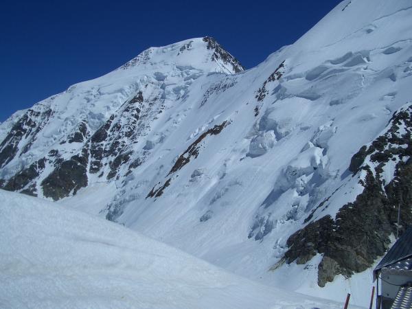 Schnee auf dem Grossen Aletschfirn heute Nacht nur zum Teil tragend, es hat sehr schlecht abgekühlt. Ansonsten sind die Gletscher noch gut eingeschneit. Bei klarer und kühler nacht werden die Schneeverhältnisse sehr gut sein. Heute Morgen bis auf etwa 3300M.ü.M. keine durchgehend tragende Schneedecke. Ab dort Schnee kompackt und tragend. Die Felsenpartien der Haslerrippe sind mehr oder weniger trocken und Schneefrei. Im oberen Teil der Route tadellose Bedingungen.