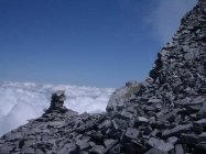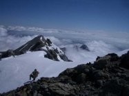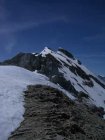 S-wand trocken, die ursprünglich geplante SW-wand ist aufgrund der restschneeflecken auf den bändern noch nass. die überschreitung selber ist problemlos machbar, obwohl der schnee häufig nicht tragend ist.