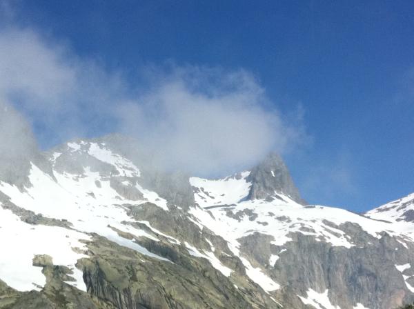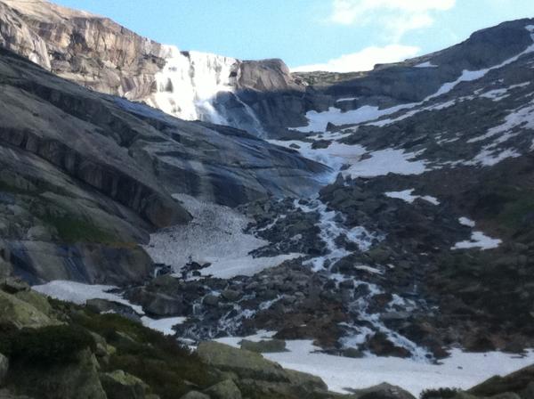 Ab Diechter auf ca. 1'900m noch beinahe durchgehende Altschneedecke. Der Hüttenwart der Gelmerhütte hat aber gute Pfade an den steileren Stellen angelegt.