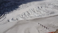 Es liegt noch viel Schnee auf dem Gletscher. Im oberen Teil kaum Spalten anzutreffen. Alles ohne Steigeisen bewältigt. Beim runterlaufen knietiefes Einsinken im obersten Teil - Stülpen sind von Vorteil. Sonst bestes Wetter mit einem zügigen aber nicht so kalten Wind auf den Gipfel.