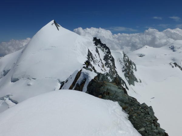 Durch die angehängte Überschreitung des Feechopfs wird die Besteigung des aussichtsreichen Allalinhorns auch alpinistisch attraktiver.