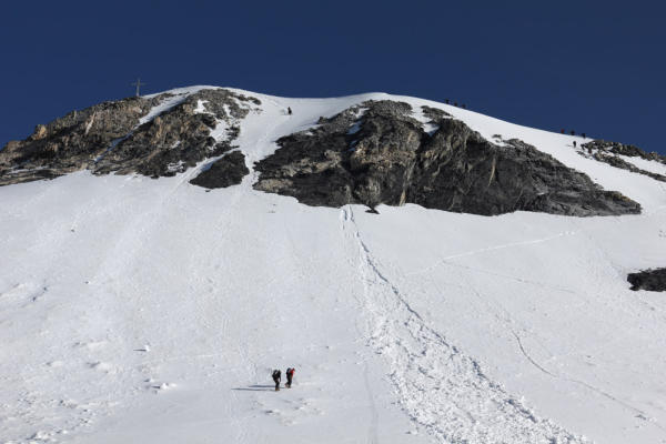 Gletscher am Anfang weich, aber bald tragend. In der Südrinne noch gute Verhältnisse, apert aber stellenweise bald aus, nur noch dünne Schneeauflage. Von der Schulter bis zum Gipfel noch durchgehend Firn und kein Blankeis, aber der Untergrundschotter schimmert schon etwas oberhalb der Schulter durch. Teilweise Trittfirn, teilweise härter. Direktanstieg von oberer Schulter zum Gipfel unangenehm werdend da lose Felsen freiwerden, besser den Umweg rechts ausholend über den Grat.