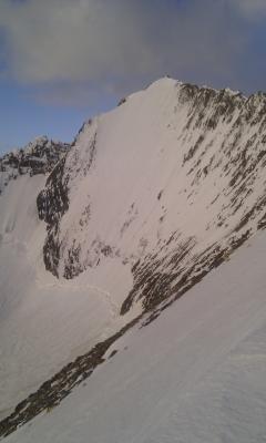 Daher Planänderung: Aufstieg über die Normalroute zum Nadelhorn, soweit wie mit Ski möglich.
