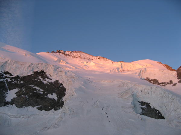 Aufstiegszeit: 5 h ab Refuge des Ecrins 3'175 m (Angabe im Führer von F. Labande).