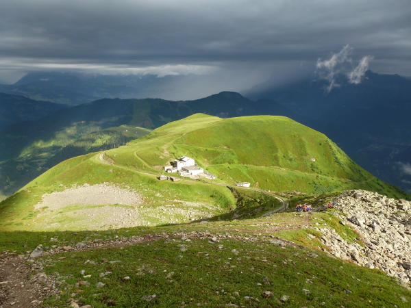 Obwohl dann für den 09.07.2012 praktisch kein Wind vorhergesagt war. War genau dieser für uns (und fast alle andern) der Grund in der Vallothütte abzubrechen. Ein weitergehen war bei Windböen von 70-80km/h am Bossesgrat zu heikel.