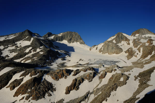 Der Bergsommer ist gekommen. Hüttenzustieg praktisch Schneefrei, nordseitig liegt aber schon noch Schnee, letzte Schneefelder nordseitig auf ca 2100m; südseitig praktisch aper bis auf 2600m.