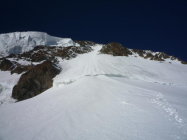 Und nochmal der Triftjigrat... Immer noch Topverhältnisse. An ein paar Stellen ist die Schneeauflage nur noch dünn, ist aber unproblematisch. Die Felsen am Originalausstieg sind gut eingeschneit, man hat kaum Felskontakt.