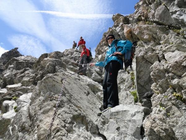 Im Abstieg kann im unteren Wandaufschwung ein Felshaken zum raschen Absteigen am Fixseil benützt werden (30m), bei grösserer Gruppe empfehlenswert. Im Abstieg Schnee auf Portchabellagletscher trotz hoher Temperatur immer noch fest, keine offenen Spalten. Anseilen trotzdem unbedingt empfehlenswert.