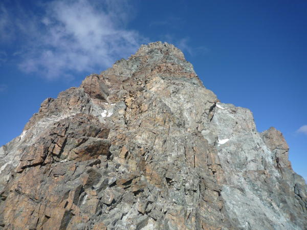 Sehr gute Verhältnisse. Für das Schneefeld am Einstieg zum Ostgrat sollte man Steigeisen und Pickel dabei haben. Der Ostgrat war völlig trocken, die Schneereste hinter dem Torrione St. Robert harmlos. Am Normalweg gibt es ein paar Schneefelder, habe die Steigeisen dort aber nicht benutzt.