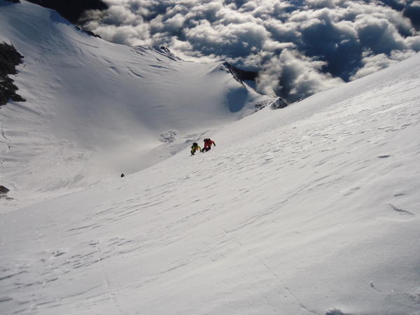Top! Praktisch durchgehend Trittfirn in der Wand, Überschreitung zum Nadelhorn auch sehr gut!