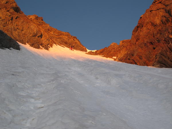 Ansonsten, wenn es warm ist, von der Bordierhütte über das Galenjoch zum Dirruhorn aufsteigen, um nicht in der Rinne zum Dirrujoch oder Selle aufsteigen zu müssen.