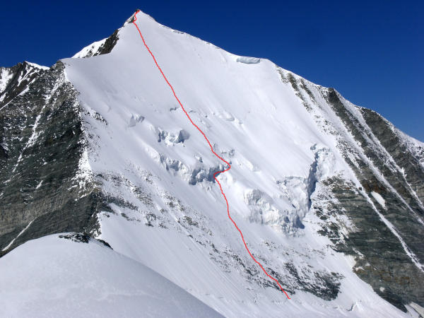 Top Verhältnisse im Zustieg und in der Nordwand selber. Unteres Drittel durch die Felsen perfekter Firn, dann in der Querung unter den Seracs durch etwas viel Schnee und in der Gipfeleiswand wieder guter, allerdings etwas weicher Trittfirn (keine Möglichkeit Schrauben zu setzen!).