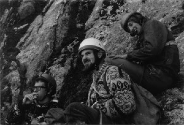 Der grosse Lorbeerkranz - wahrscheinlich würde er einen aus Alpenrosen bevorzugen (oder noch eher ein paar Dosen Bier) - gehört Fritz Villiger: Er eröffnete diese grandiose Tour 1959 zusammen mit Kurt Grüter. In einem Tag. Mit Normalhaken und etwa 30 Holzkeilen (einen winzigen Rest von einem konnte ich irgendwo noch bewundern). Ich kann mir diese Leistung kaum vorstellen, denn wir müssen ja "nur" klettern und nicht noch Haken schlagen. Chapeau!