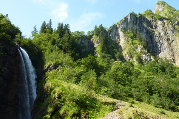 Höfats Ostgipfel über den SSO-Grat (Normalweg ) Von Oberstdorf-813 m mit dem Bike ins Oytal zur Käseralpe-1403 m. Schon vor dem Stuibenfall recht steile Auffahrt hinauf zur Alpe. Ab dort zu Fuß über einen schon recht zugewachsenen Weg zum Älpelesattel auf 1778 m. Hier beginnt der eigentliche SSO-Grat zum Höfats Ostgipfel. Anfangs leicht über den breiten Gratrücken zu einer vorgelagerten Erhebung-2003 m mit Gedenkkreuz. Ab hier wird es merklich steiler und der Grat ausgeprägter. Nun auf einem gut erkennbaren Weglein - zuweilen über felsige Abschnitte bis kurz unter den Gipfel. Nun ein paar Meter über eine ausgesetzte Felsschneide im Schwierigkeitsgrad II (gute Griffe) zum Gipfelkreuz. Abstieg wie Aufstieg.