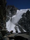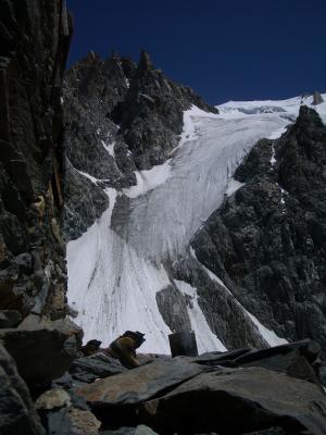 eine riesige eislawine, die vom NE-seitenarm des glacier du mt.blanc heruntergekommen ist, bedeckt den ganzen zustieg zum sporn.