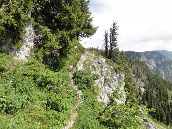 Der offizielle Wanderweg ab Pt. 1799 kann wie oben beschrieben einfacher abgekürzt werden. Gerade für kleinere Kinder ist er an der Schlüsselstelle zu schwierig und es herrscht Absturzgefahrt trotz Stahlseilversicherung.