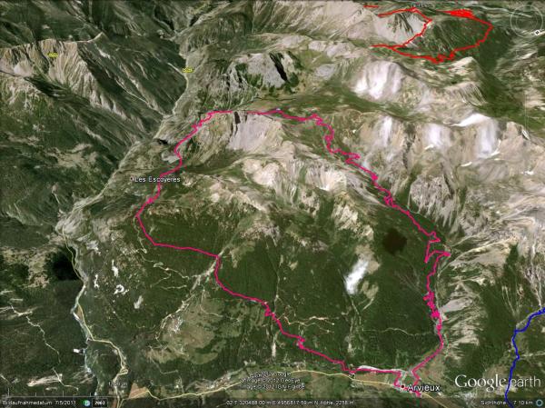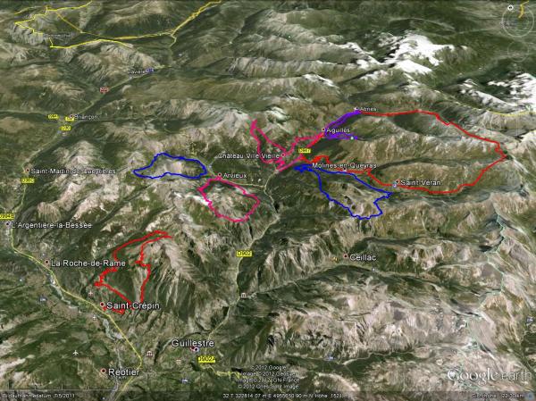 Camp Gouret - Aiguilles - Ville Vielle - Prats Bas - Prats Hauts - Gaudissart - Molines d. Q. - Pierre Gross - Chalet Amoureux - St. Veran - Chapelle Clausis - Col Chamoussiere - knapp unterhalb Col Agnel - Col Vieux - L'Echalp - Ristolas - Abries - Camp Le Gouret