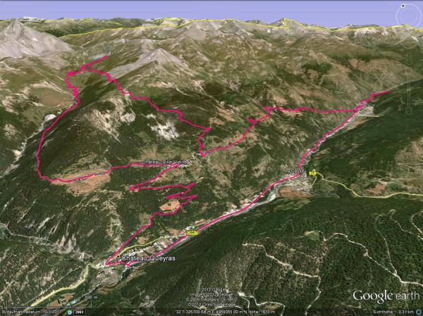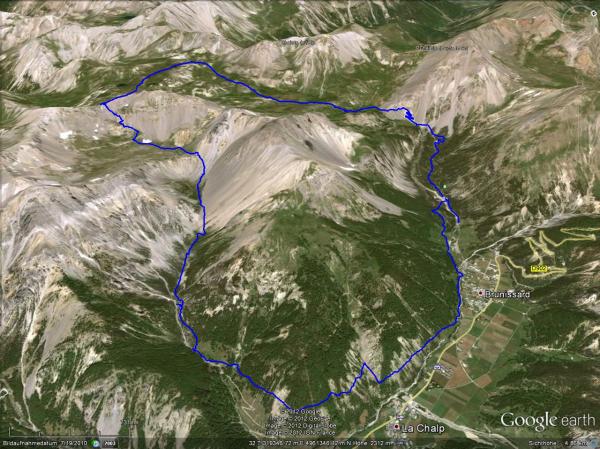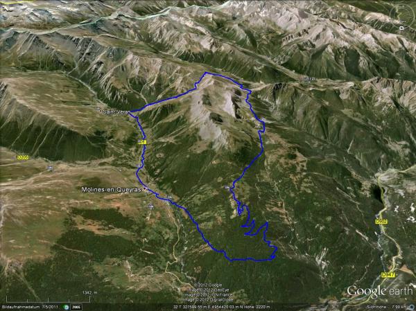 Le Gouret - Aiguilles - Ville Vielle - Chateau Queyras - Le Meyries - Rouet - Berg. Peas - alte Asbest-Mine (2451m) - Col Creche - Bois Noir - Meyries - Höhenweg ca. Osten nach Aiguilles - Le Gouret