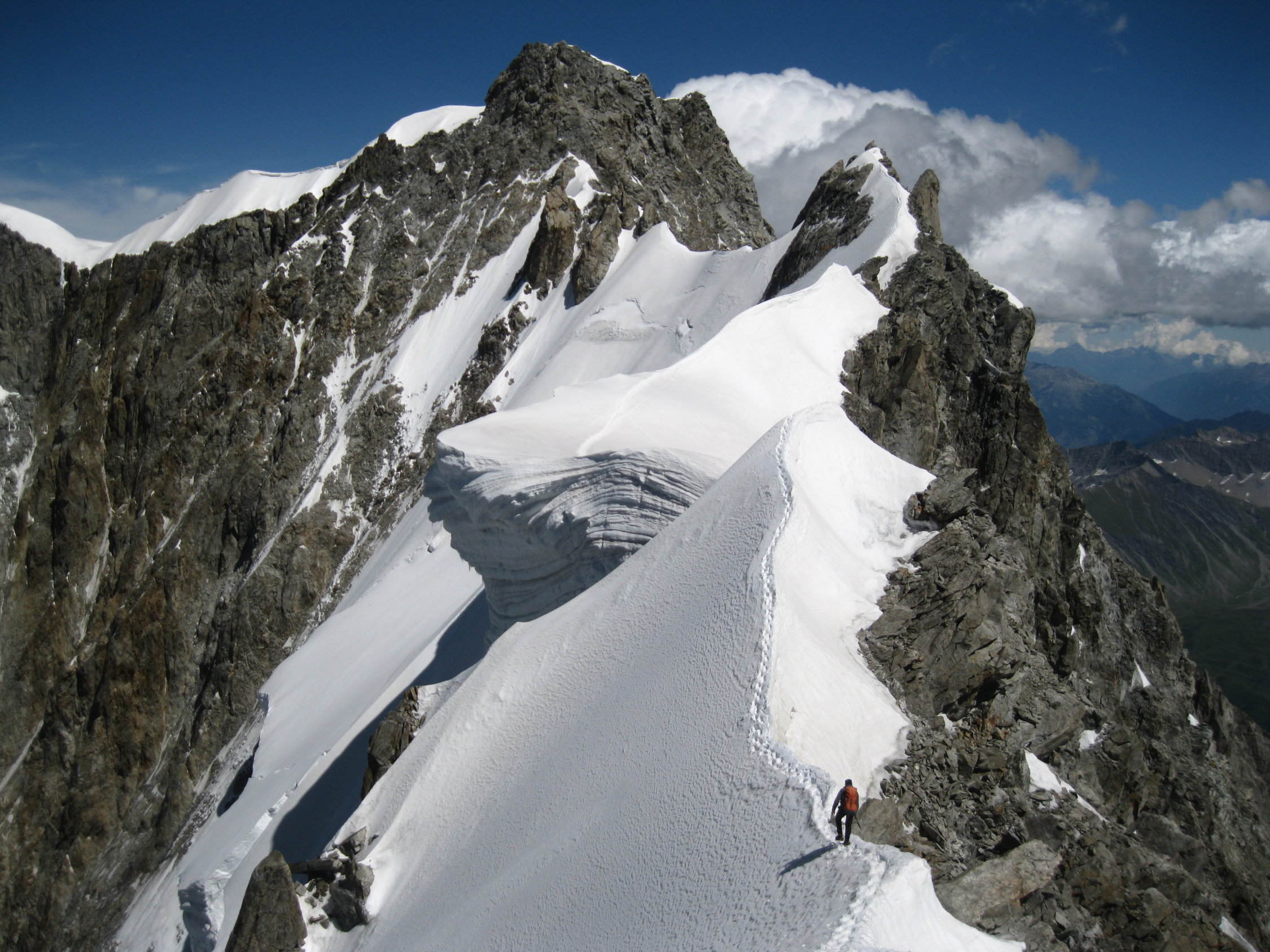 Sehr gute Verhältnisse: Wie meistens trockener Fels in der Dent du Geant Südwand, doch auch im Schnee nicht zu tiefes Einsinken, kaum Blankeis. Der mitunter heikle Abstieg von der Pointe Walker hinunter zur Boccalatte-Hütte ist harmlos.