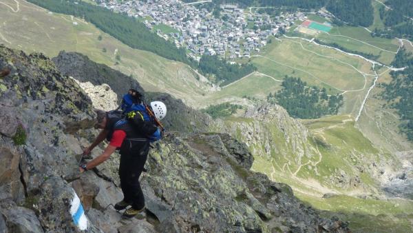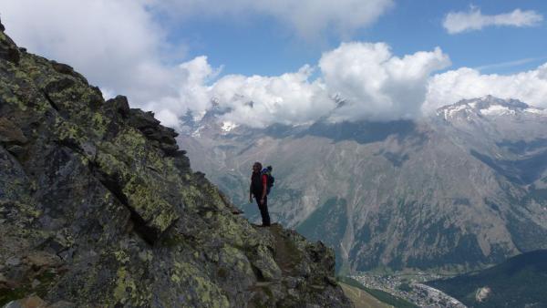 Wir planten zuerst den Aufstieg über das Hohbärghorn und den Nadelgrat folgend über das Stecknadelhorn zum Nadelhorn. Im Zustieg zur Flanke beim Hohbärghorn fanden wir nicht die richtige Route und uns wurde die Angelegenheit über den Gletscherabbrüchen zum Riedgletscher zu scharf. Nach kurzem Versuch haben wird von der Route abgesehen und sind direkt in steiler Flanke zum NO-Grat aufgestiegen. Wir merkten, dass uns für solche Gletschertouren noch Erfahrungen fehlen. Diese konnten wir aber mit dem Versuch sammeln und sie werden für kommende Hochtouren wertvoll sein. Trotzdem freuten wir uns über die geglückte Hochtour auf das Nadelhorn. Es ist schön und wunderbar, gemeinsam mit meinem Bruder diese tollen Touren zu machen.