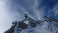 Ganz beeindruckt und staunend sahen wir den zwei "Pünktchen" zu, die in der mächtigen und steilen Nordflanke der Lenzspitze aufstiegen. Für solche Aufstiege hätten wir noch nicht den Nerv dazu ... Uf http://www.spaceglider.at/touren/bsm.htm sind no a paar Fötile …