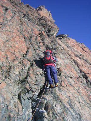 Kletterstellen oftmals ausgesetzt. Fels insgesamt gut, stellenweise aber auch etwas brüchig.
